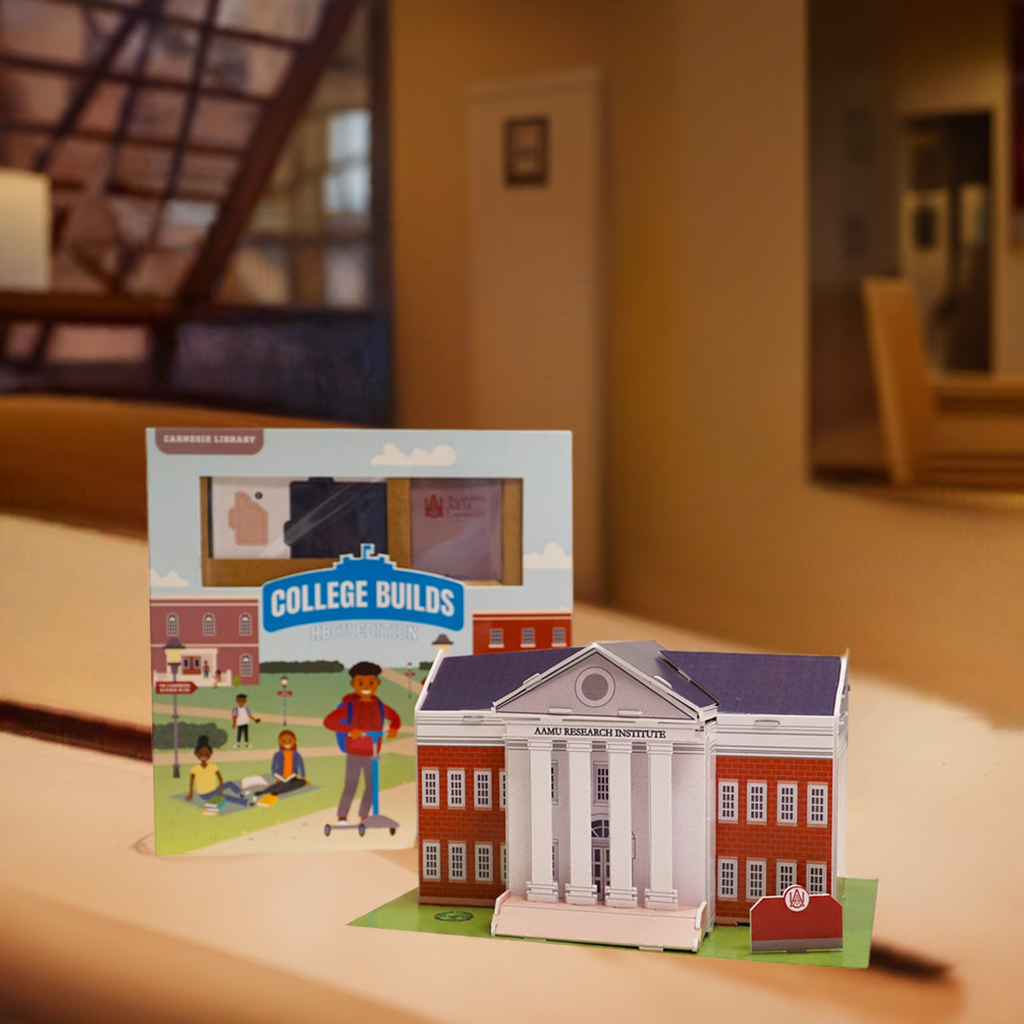 Replica of Alabama A&M University. This unique activity kit teaches aspiring architects about built design with an emphasis on culturally iconic institutions. This introduction to architectural design taps into kids' imagination and helps them to expand their ideas of the possibilities for their futures!