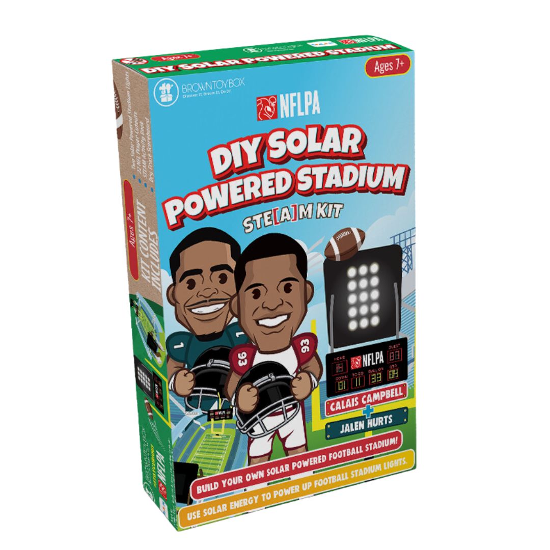 Step into the future of football and engineering with the Calais Campbell and Jalen Hurts DIY Solar Stadium! Created in partnership with the NFLPA, this innovative STEAM kit combines the excitement of the NFL with the power of renewable energy. Designed for young engineers and football fans, this kit allows you to build your very own solar-powered stadium while learning about solar energy, construction, and the science behind electricity.