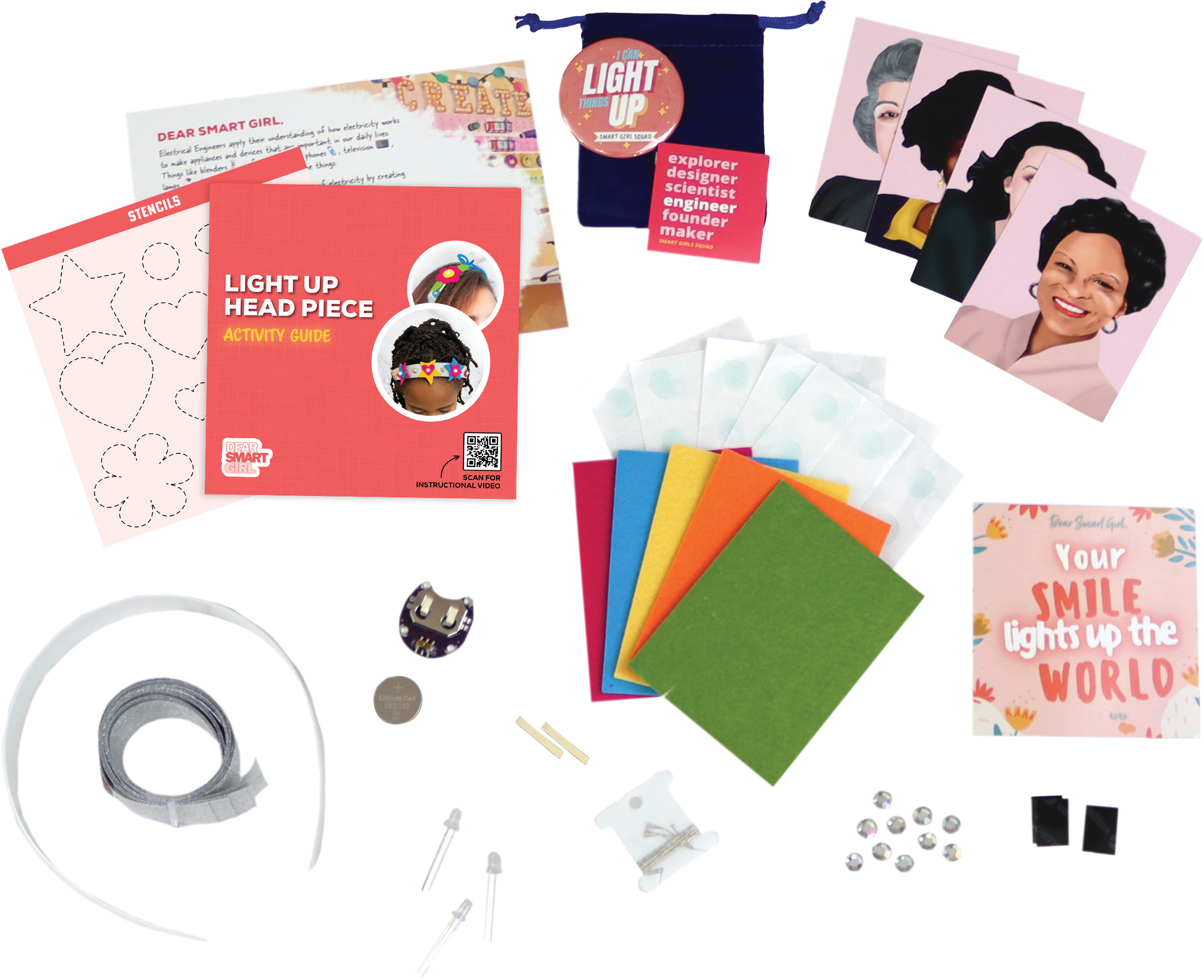 Your smart girl’s creativity will be ignited as she explores the core concepts of electricity and conductivity in this kit. She will learn about parallel circuits and build one to light up a head band of her design!