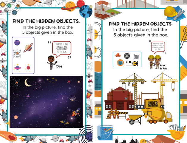 Double sided giant activity pad. One side featuring the Dadisi Academy Crew with astronomy, chemistry, museum arts, robotics, marine biology and coding activities. The other pad featuring the Dadisi Academy friends with forensics, zoology, architecture & engineering, entrepreneurship, medical sciences, agriculture, aviation and entomology activities and coloring sheets.