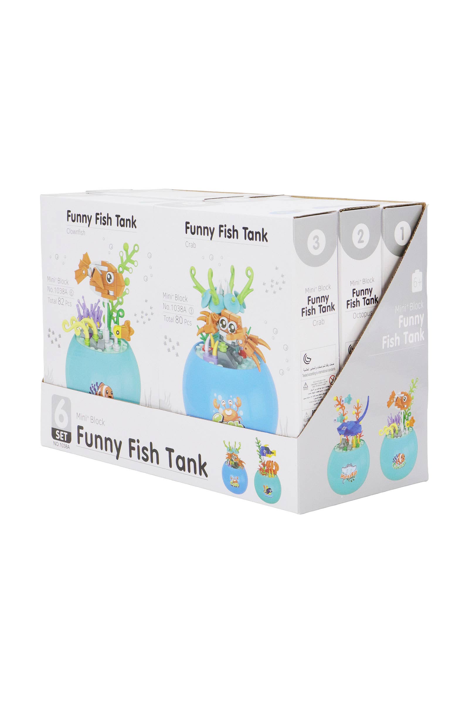 -Bring the ocean to life with the Mini Block Funny Fish Tank set! Featuring 6 adorable designs-Whale, Octopus, Crab, Manta Ray, Regal Blue Tang, and Clownfish-each colorful build sits in a round "fishbowl" for a playful display. Perfect for creative fun, collecting, or gifting.