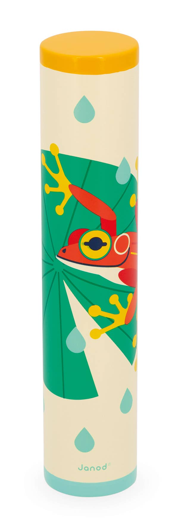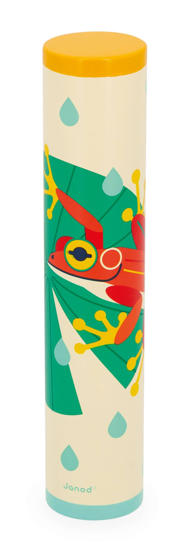 Imagine sitting with your child at the edge of a pond, on a calm afternoon, relaxing as you both listen to the sound of the Janod rain stick. Your child can listen to the sound over and over again, by simply upending it. Awakens the senses and stimulates musical discovery. Sold individually in a 6-rain stick display stand. Early-learning musical For children aged 18 months and over.