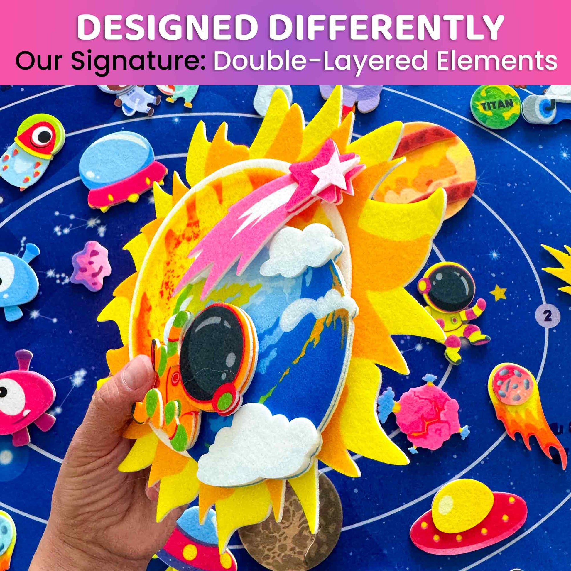🛸 61 reusable velcro elements: rockets, planets, aliens & more;